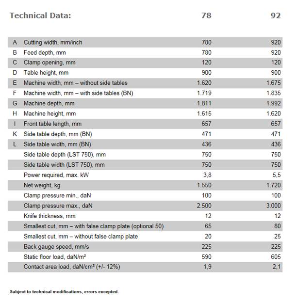 - Schneider Senator E-Line 78 and 92 with mechanical knife drive and hydraulic clamp bar