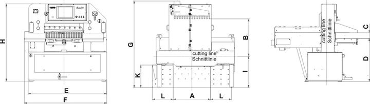 Development of E-Line guillotines includes a high degree of user friendliness. Knife change and adjustment is made from the front side. The knife pull rod never needs an adjustment. Lubrication points are easily accessible. Operation is learned easily and quickly.
